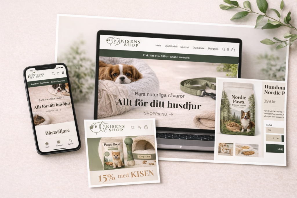 Färger, struktur, startsida, kategorier och produkter ska hänga ihop och ge ett proffsigt intryck direkt.